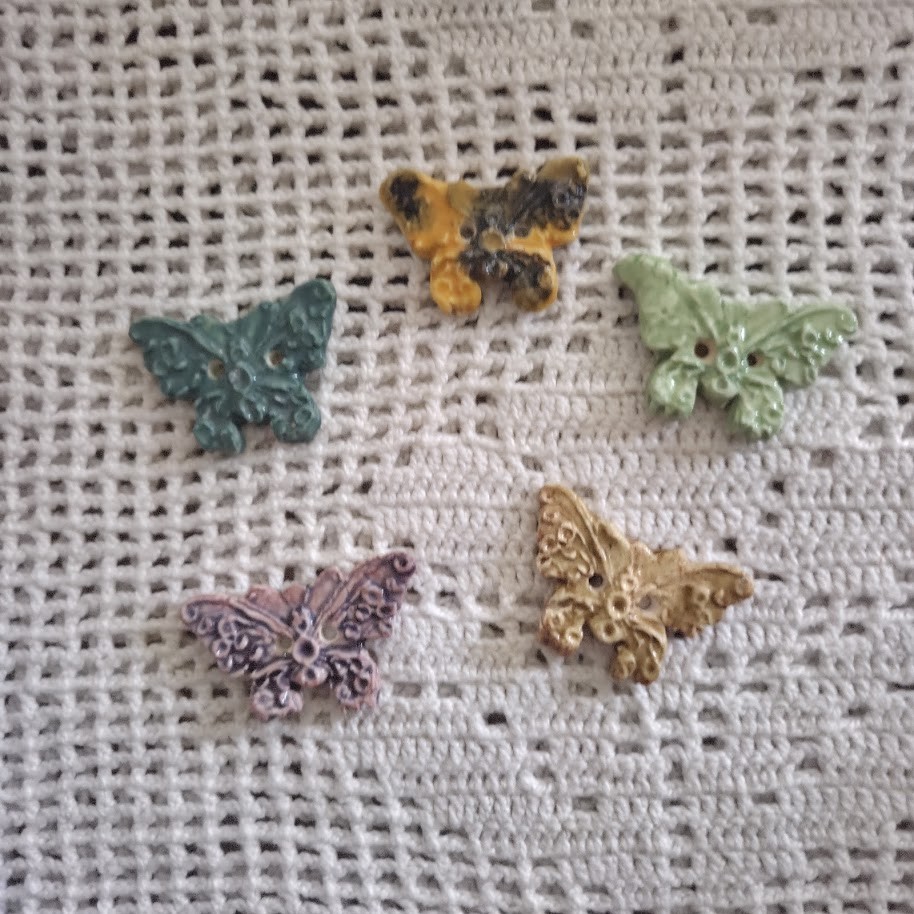 Ces boutons papillons sont en céramique faience et ont été entièrement fabriqués par mes soins