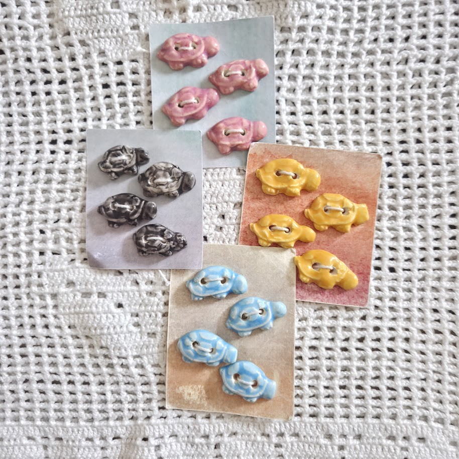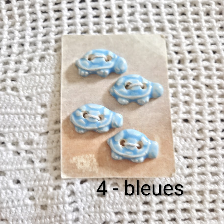 Lot de boutons décoratifs à coudre en forme de tortues en céramique faience. Ils sont fabriqués et émaillés entièrement par mes soins