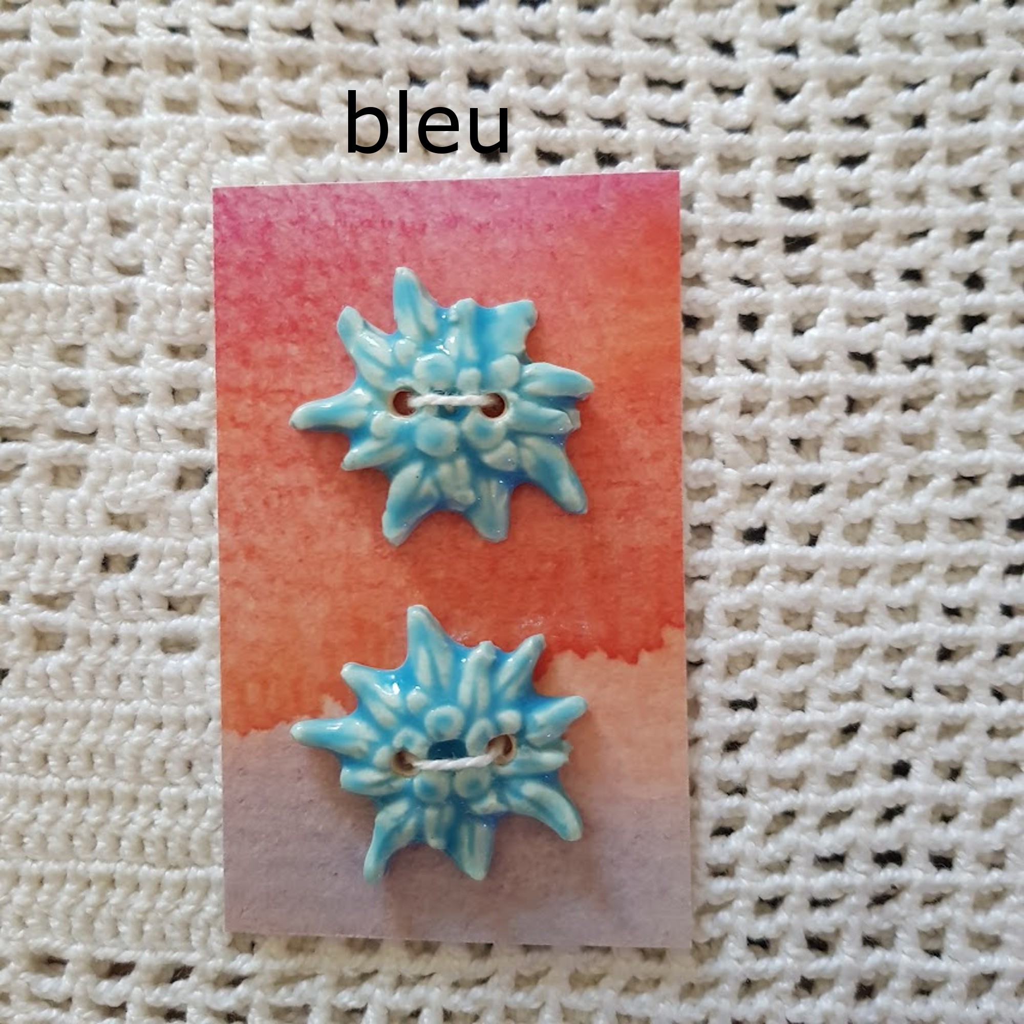 Ces boutons décoratifs fleurs edelweiss bleues sont en céramique faience. . Ils sont fabriqués et émaillés entièrement par mes soins