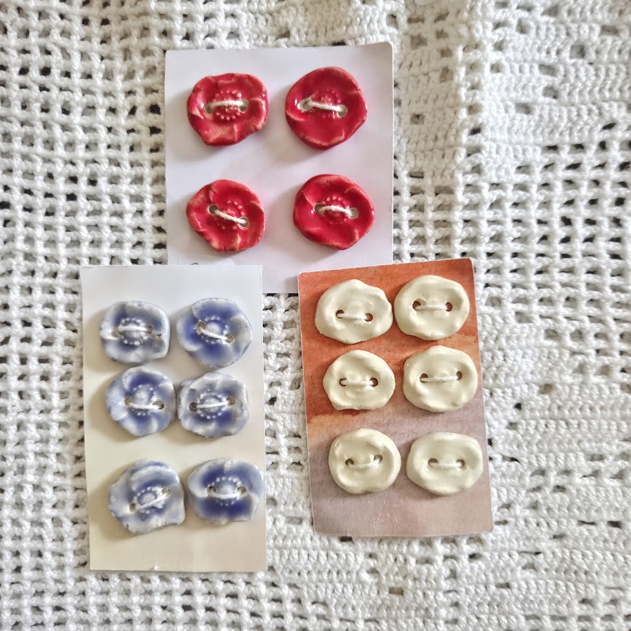 Ces lots de boutons à coudre décoratifs en forme de coquelicot - 2 trous - sont en céramique faience. Ils sont fabriqués et émaillés entièrement par mes soins - vendus par lot