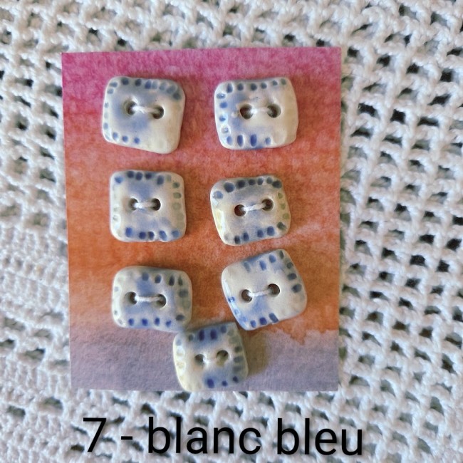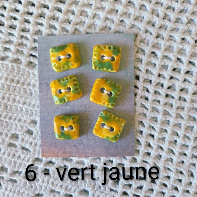 Ces boutons à coudre décoratifs carrés verts - vert jaune ou blanc bleu sont en céramique faience. Ils sont fabriqués et émaillés entièrement par mes soins - vendus par lots