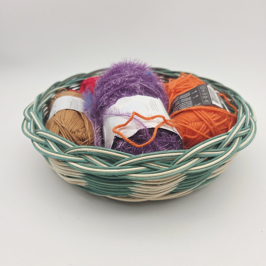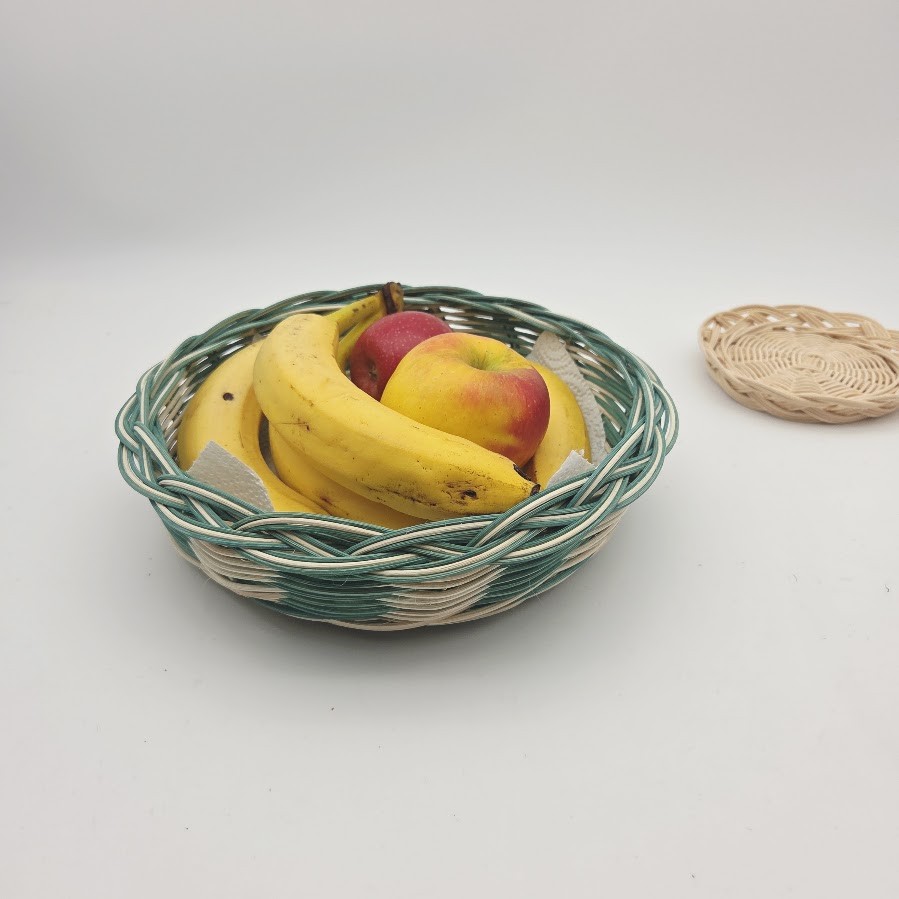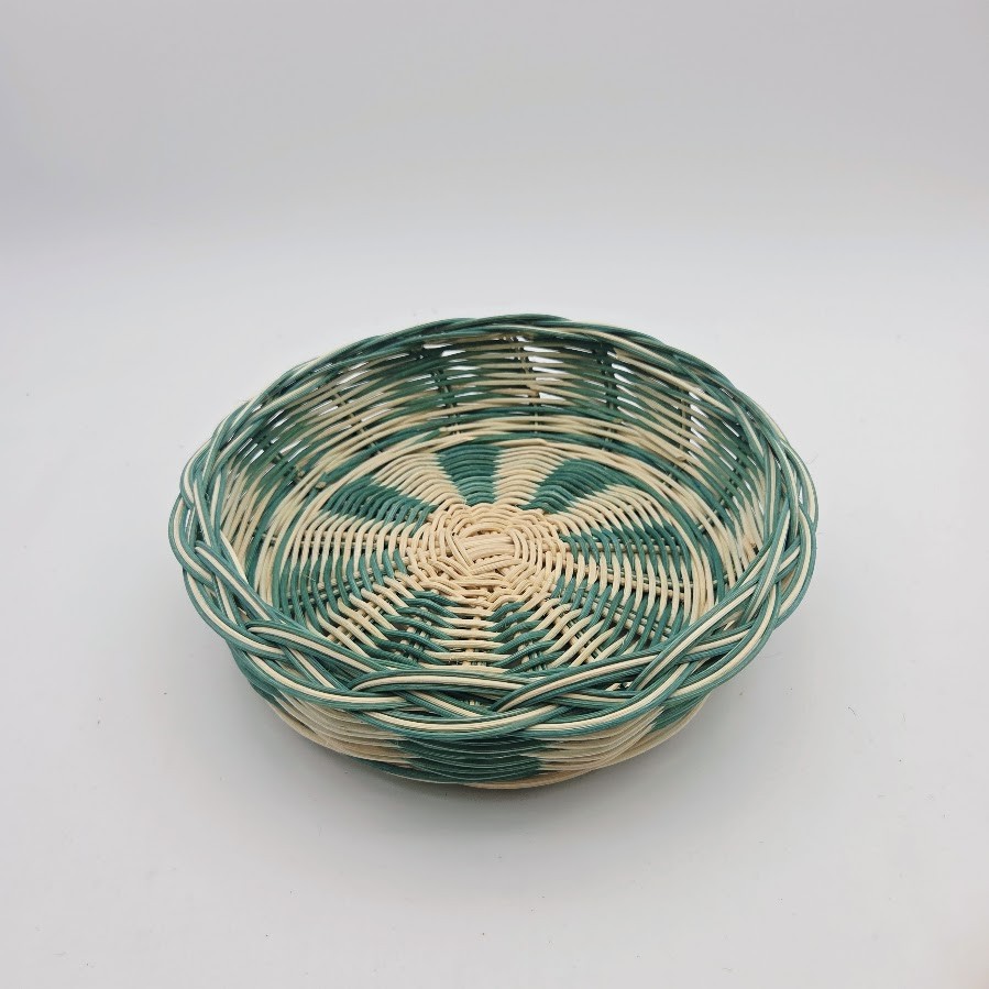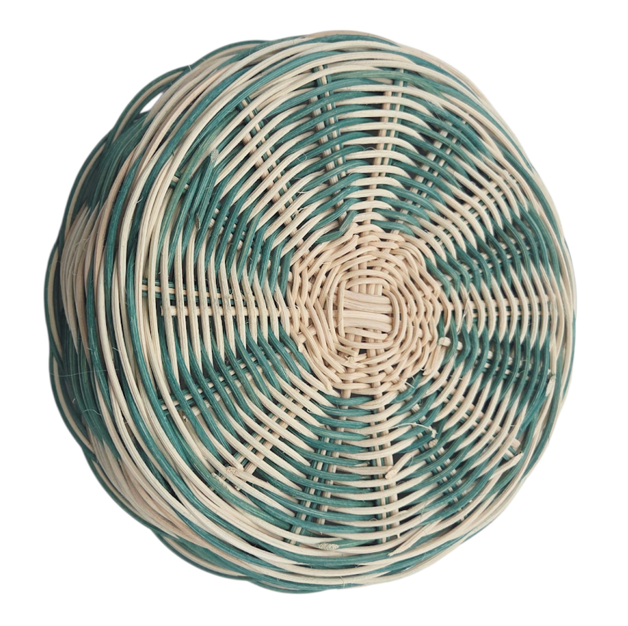 Petite corbeille ronde - coupe à fruits - panière à pain - panière à fruits - en rotin naturel écru et vert turquoise - entièrement tressé main