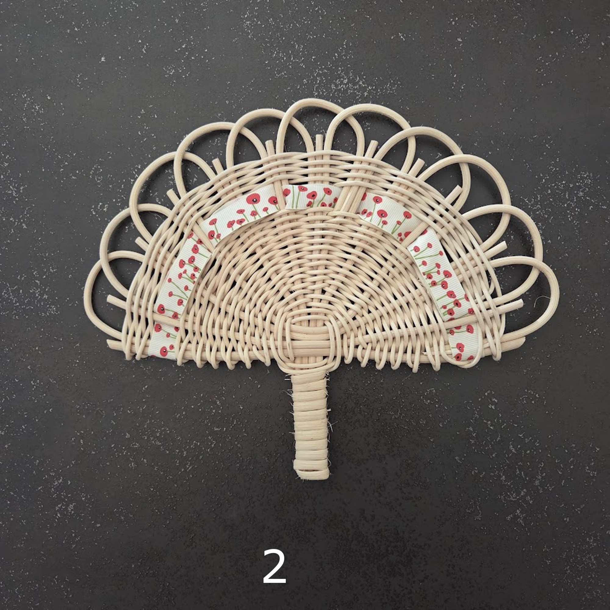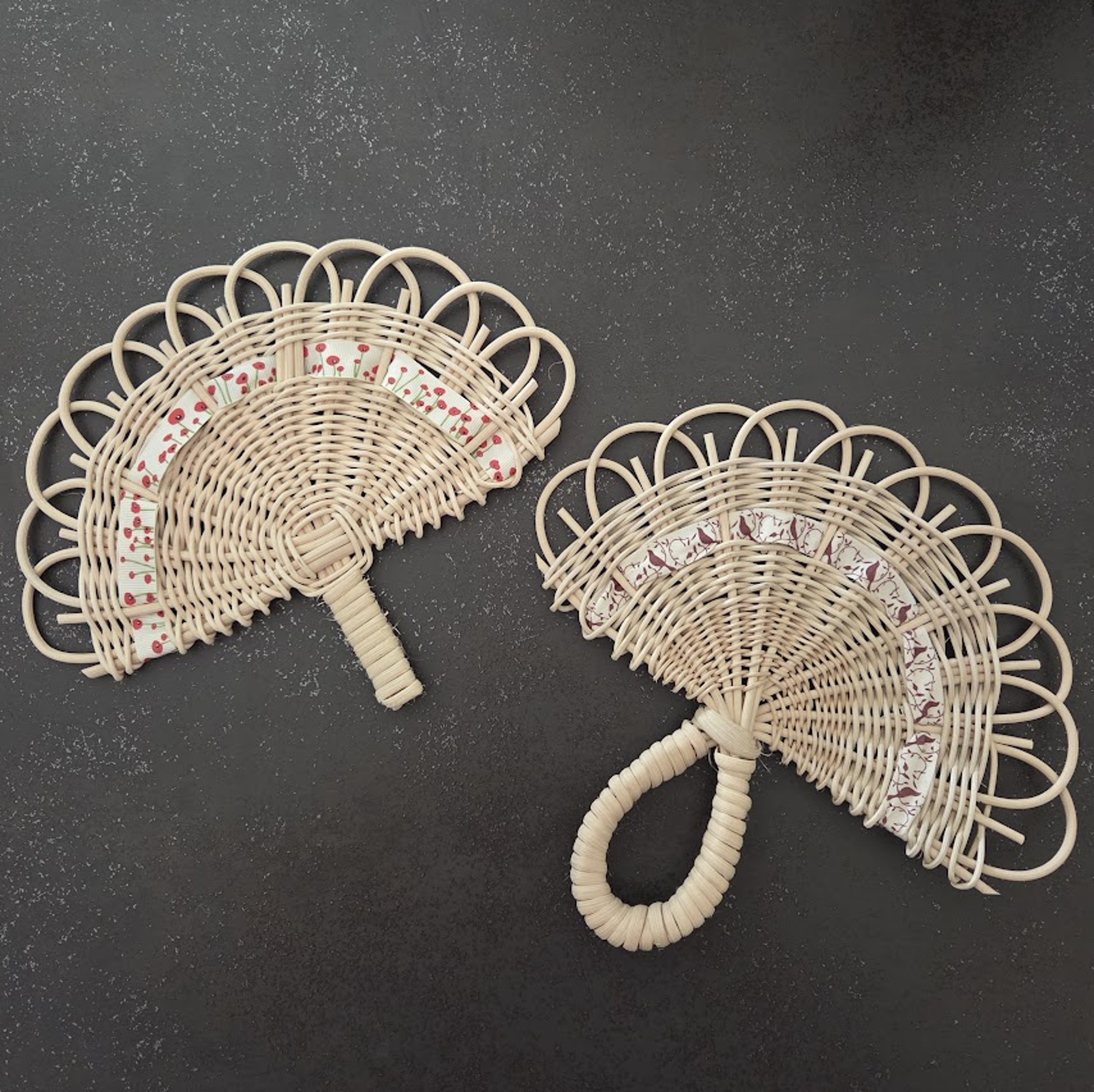 Ces éventails sont en rotin naturel écru et entièrement tressées par mes soins. Ce sont toutes des pièces uniques