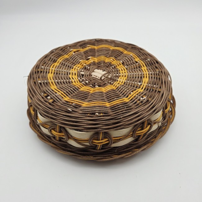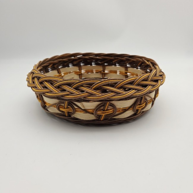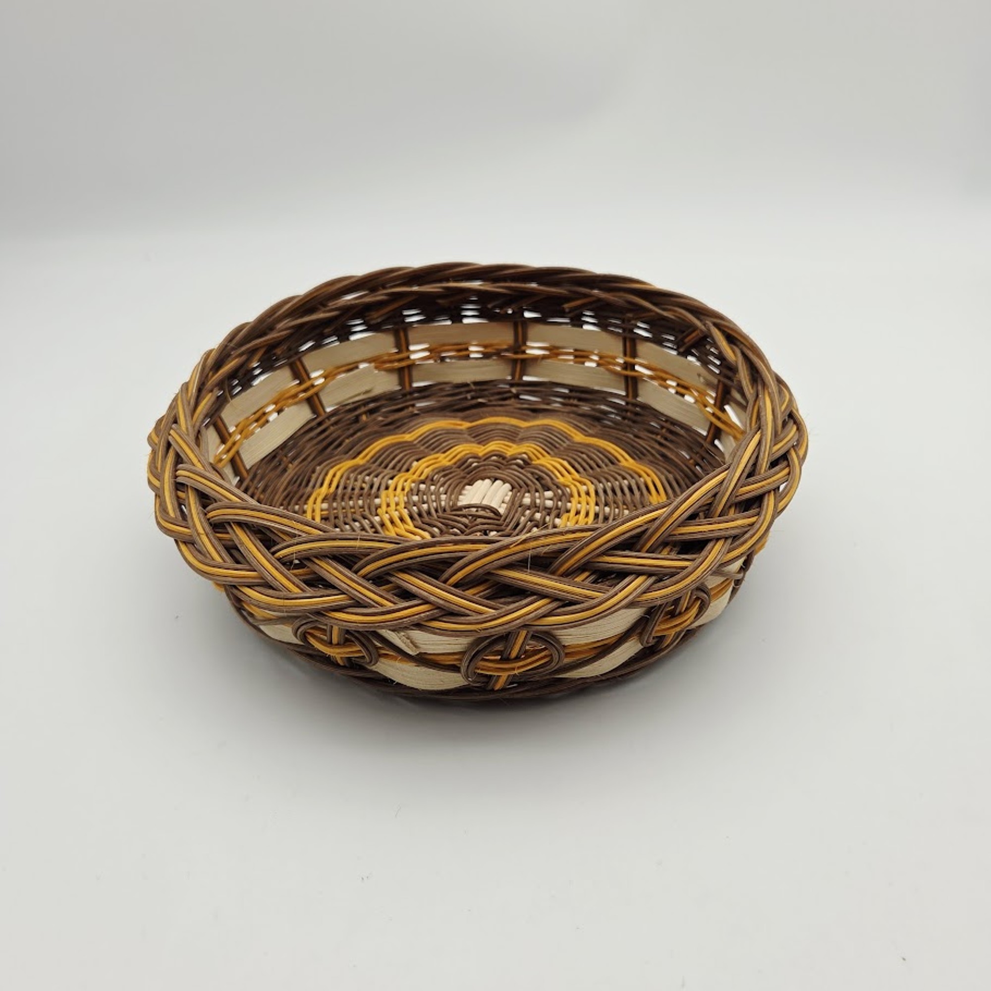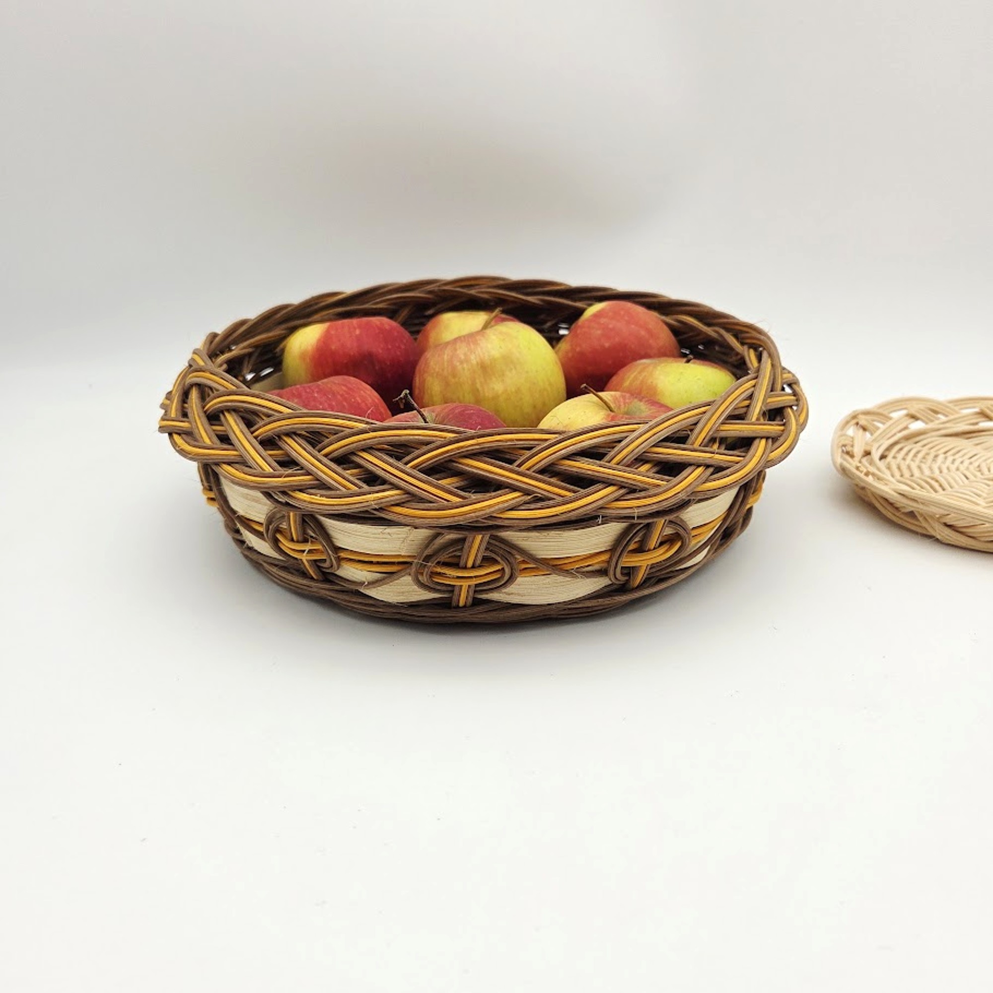 Petite corbeille ronde - coupe à fruits - panière à pain - panière à fruits - en rotin naturel marron ocre et écru - entièrement tressé main