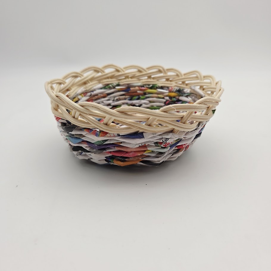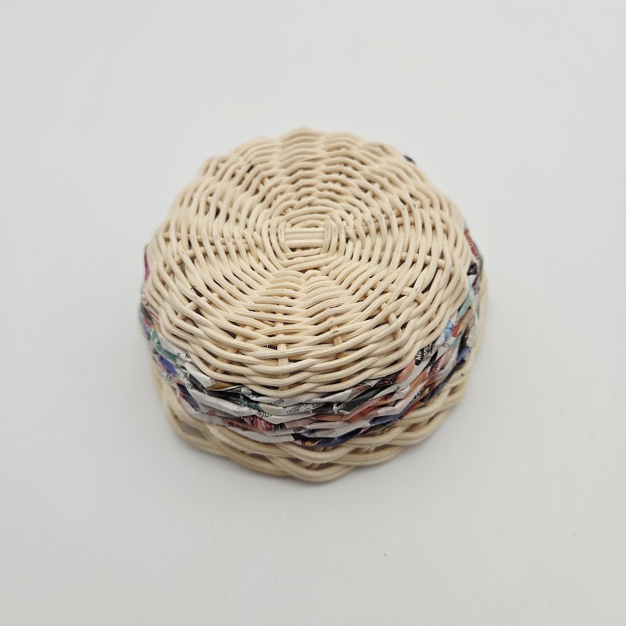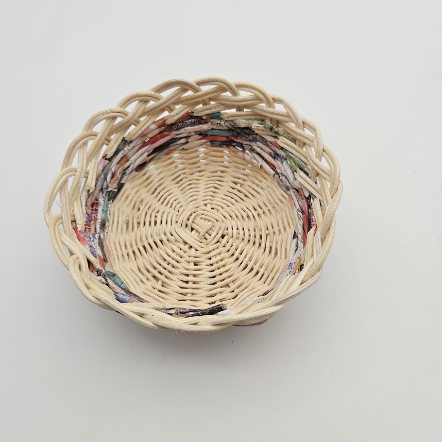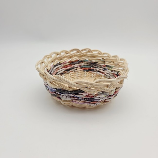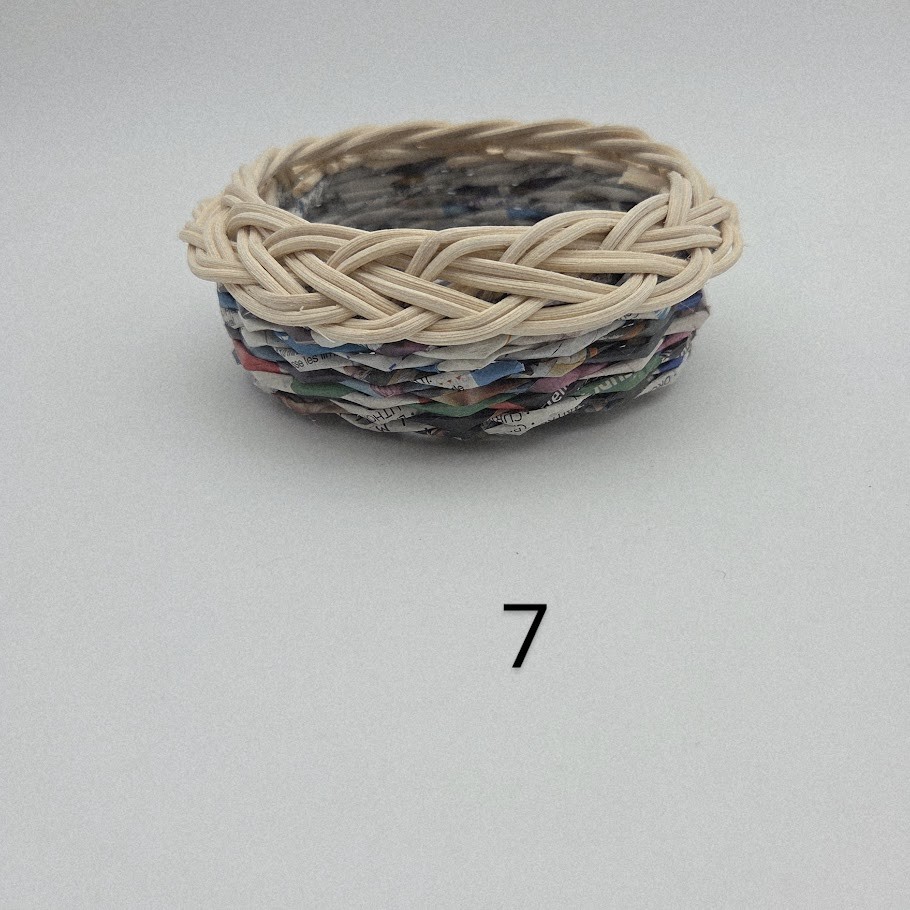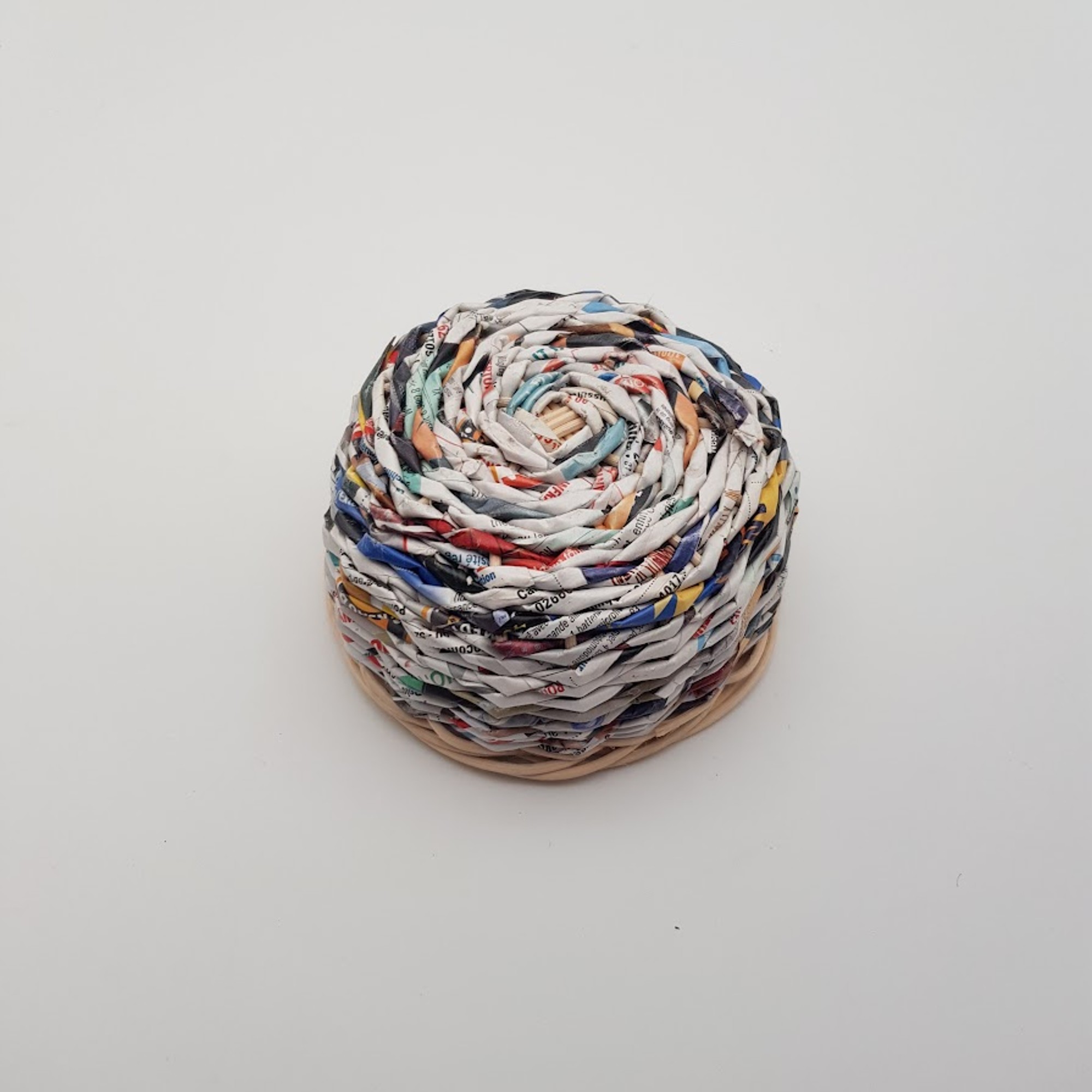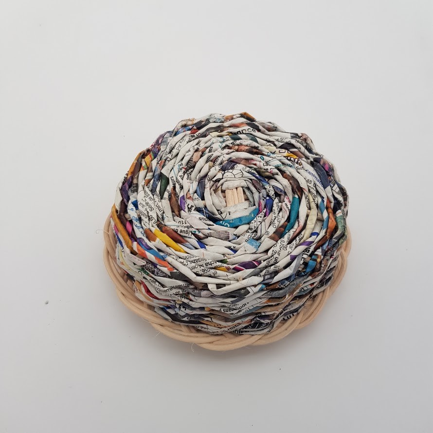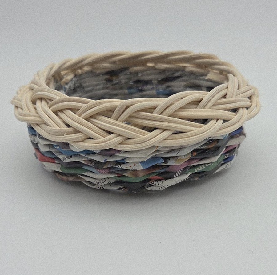 Ces vide-poche sont fabriqués en rotin naturel écru et papier magazine recyclé