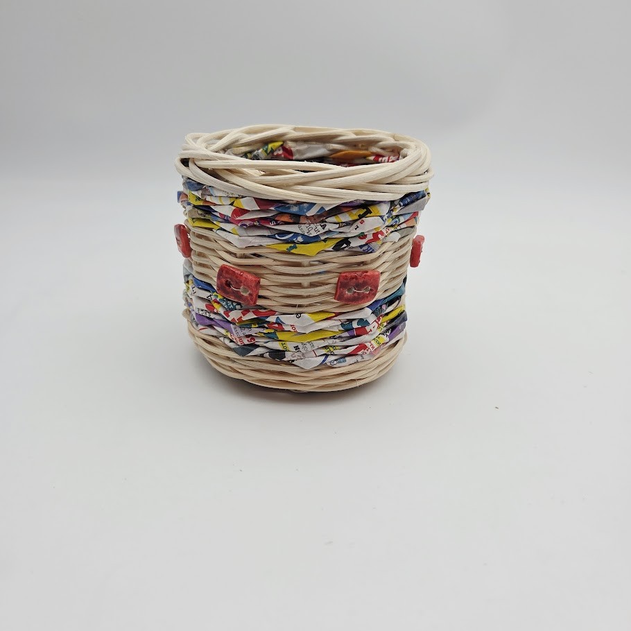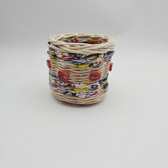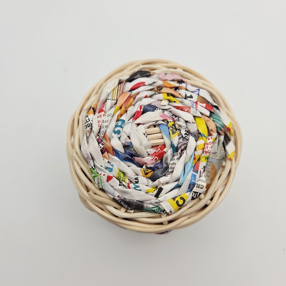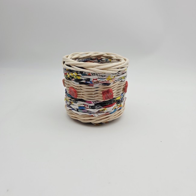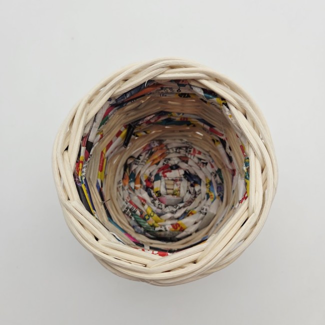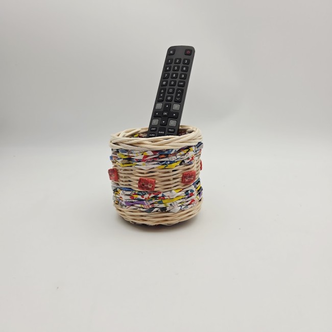 Ce pot à crayons - douillette à lunettes - télécommandes - est fabriqué en rotin naturel écru et papier magazine recyclé