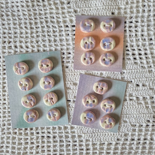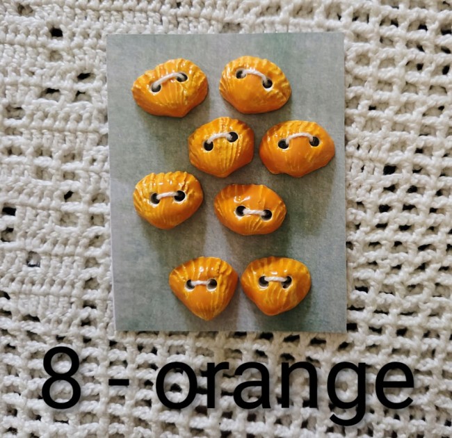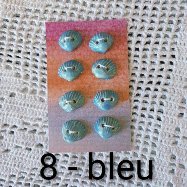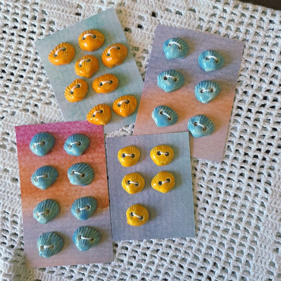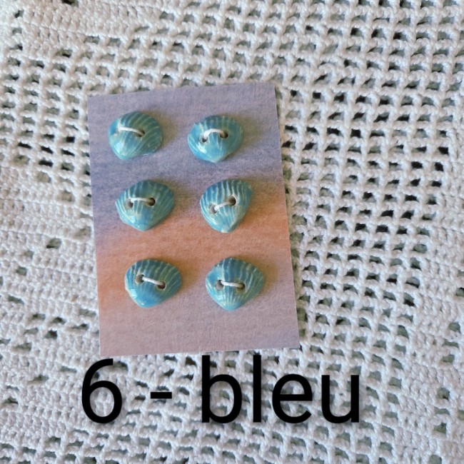 Ces lots de petits boutons à coudre décoratifs en forme de coquillages - 2 trous - sont en céramique faience. Ils sont fabriqués et émaillés entièrement par mes soins - vendus par lot