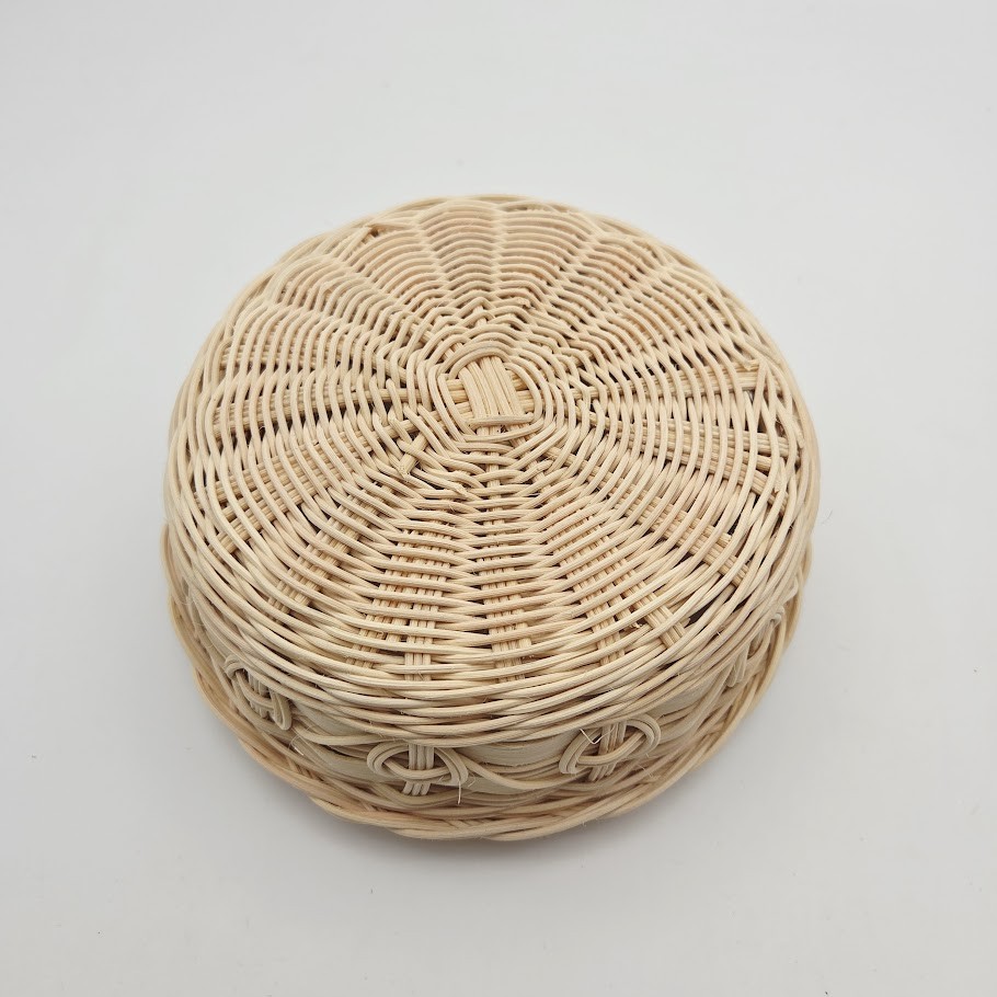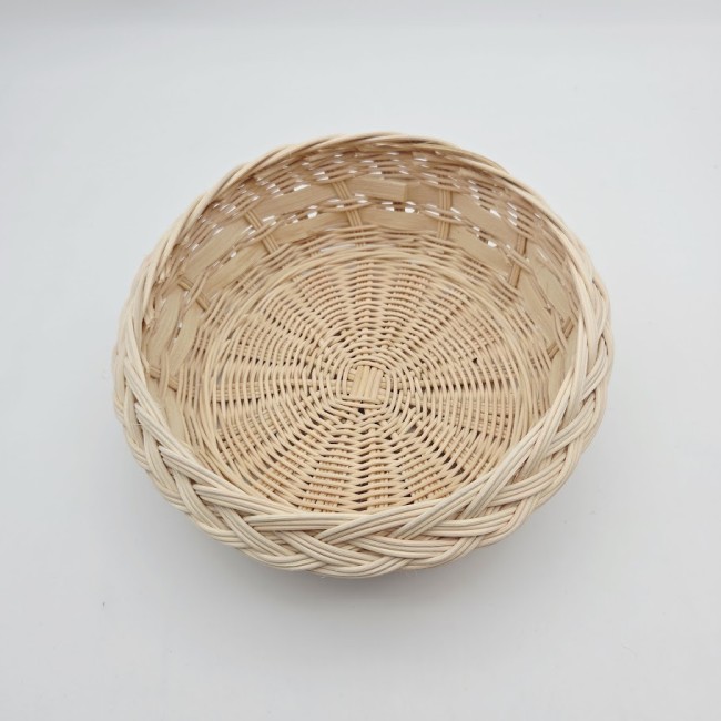 Petite corbeille ronde - coupe à fruits - panière à pain - panière à fruits - en rotin naturel écru - entièrement tressé main