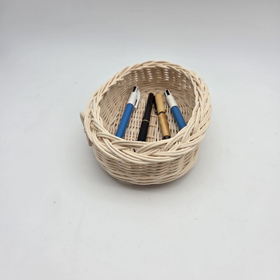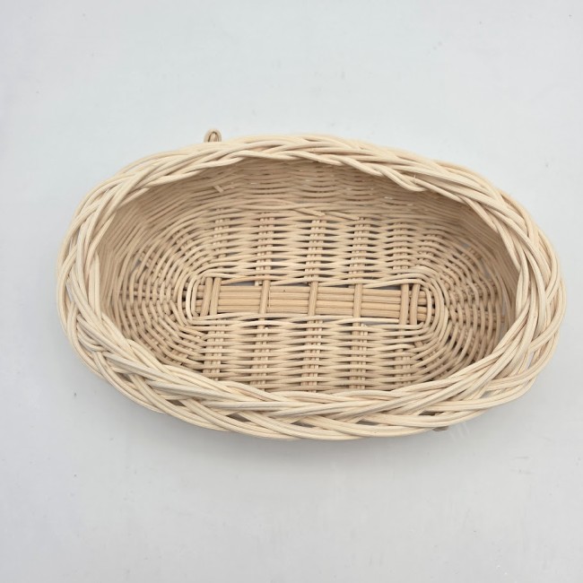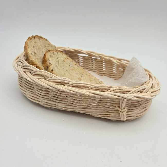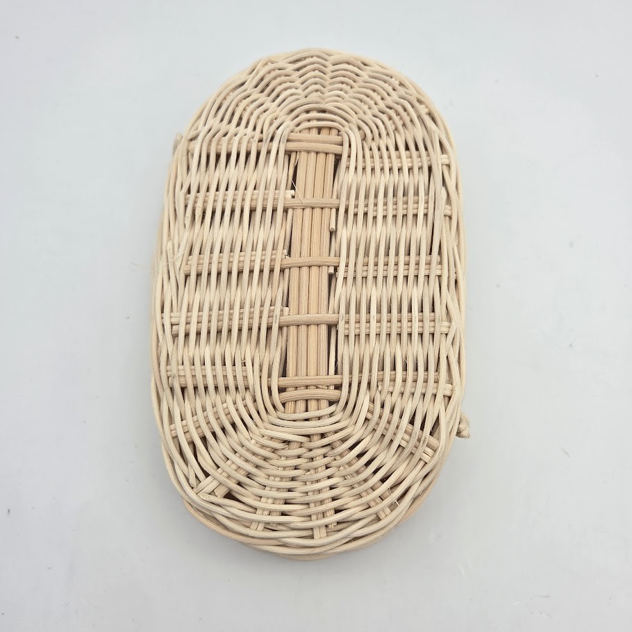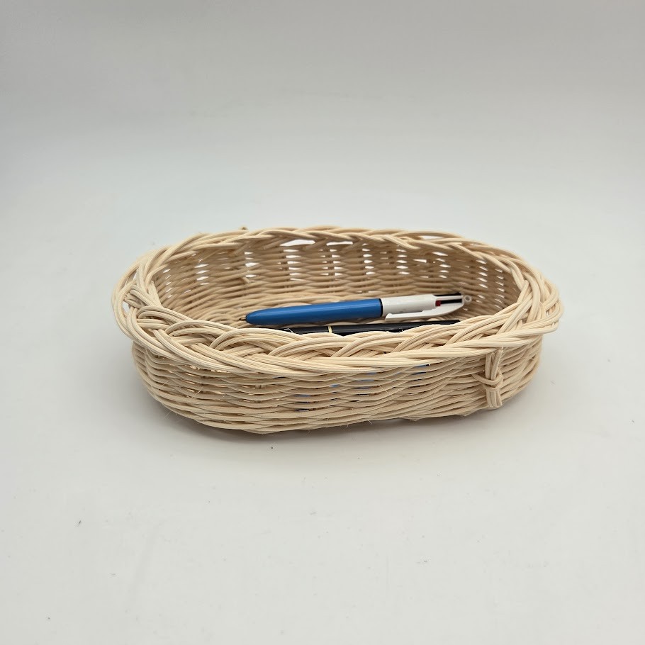 Petite corbeille allongée en rotin naturel écru - entièrement tressé main