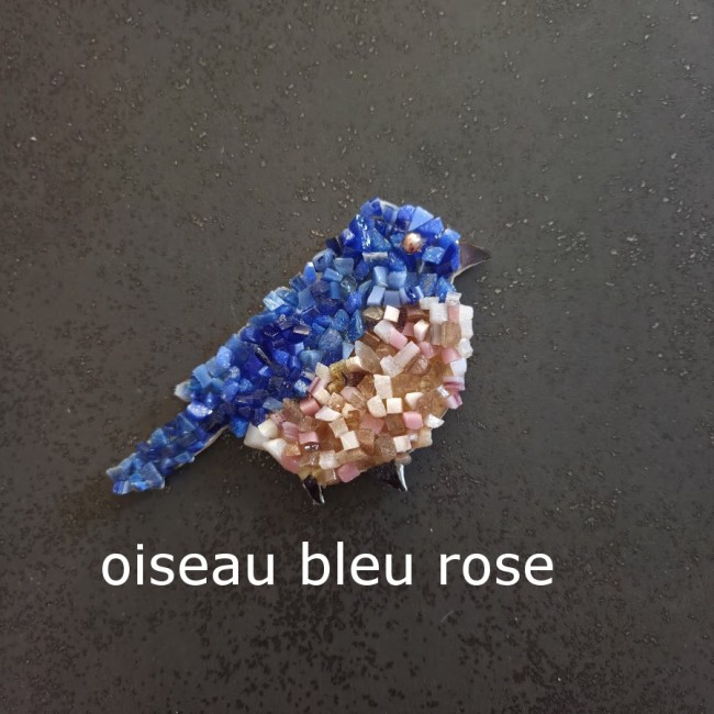 oiseau bleu rose : +/- 10 x 7 cm