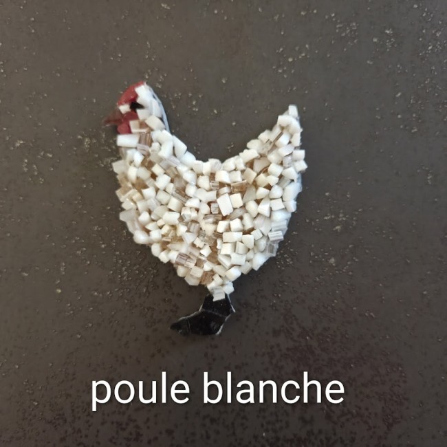 poule blanche : +/- 6.5 x 9 cm