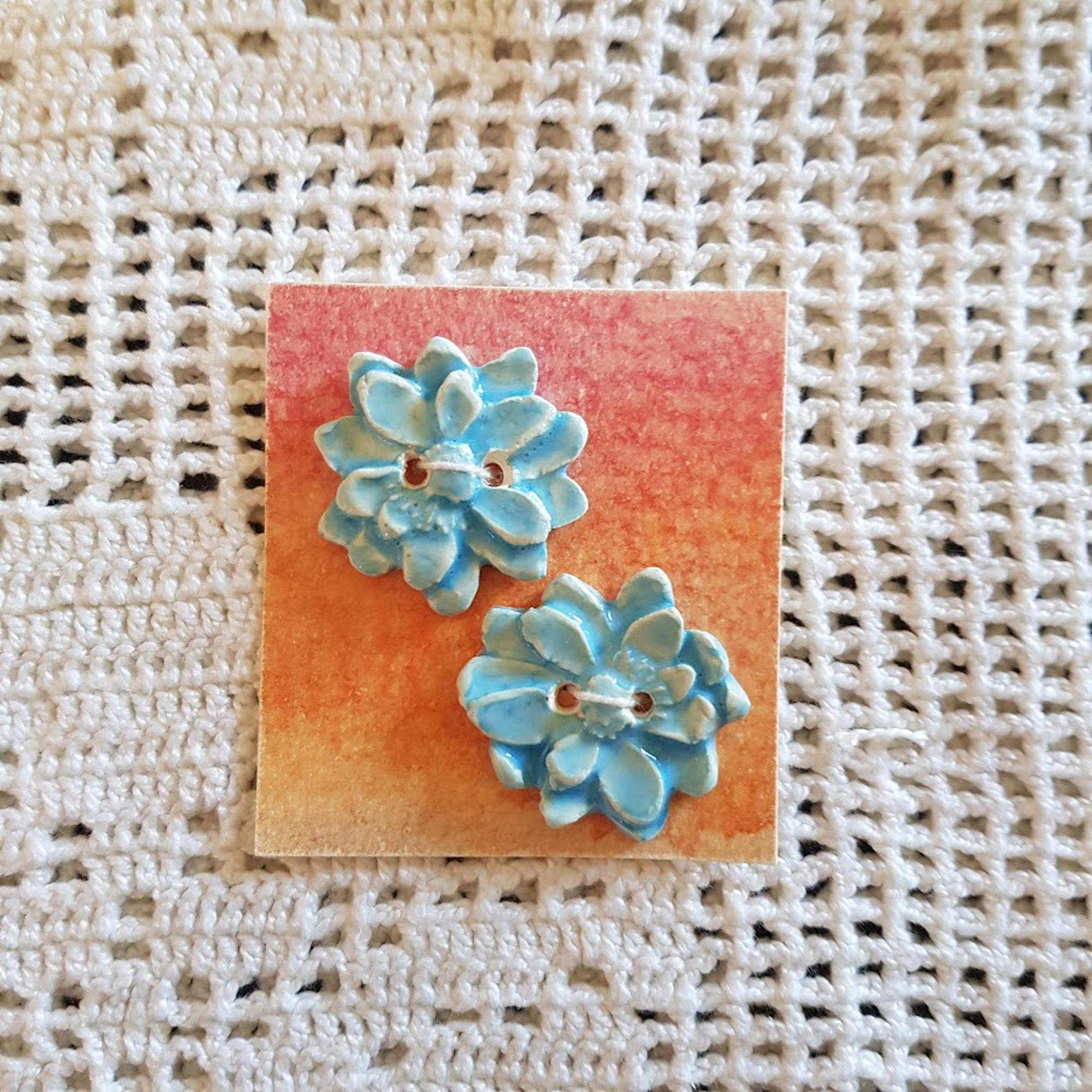 Ces boutons décoratifs fleurs edelweiss bleues sont en céramique faience. . Ils sont fabriqués et émaillés entièrement par mes soins