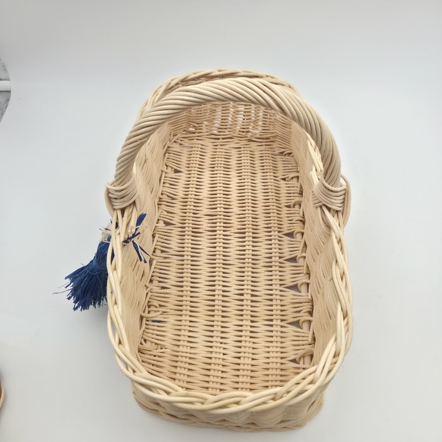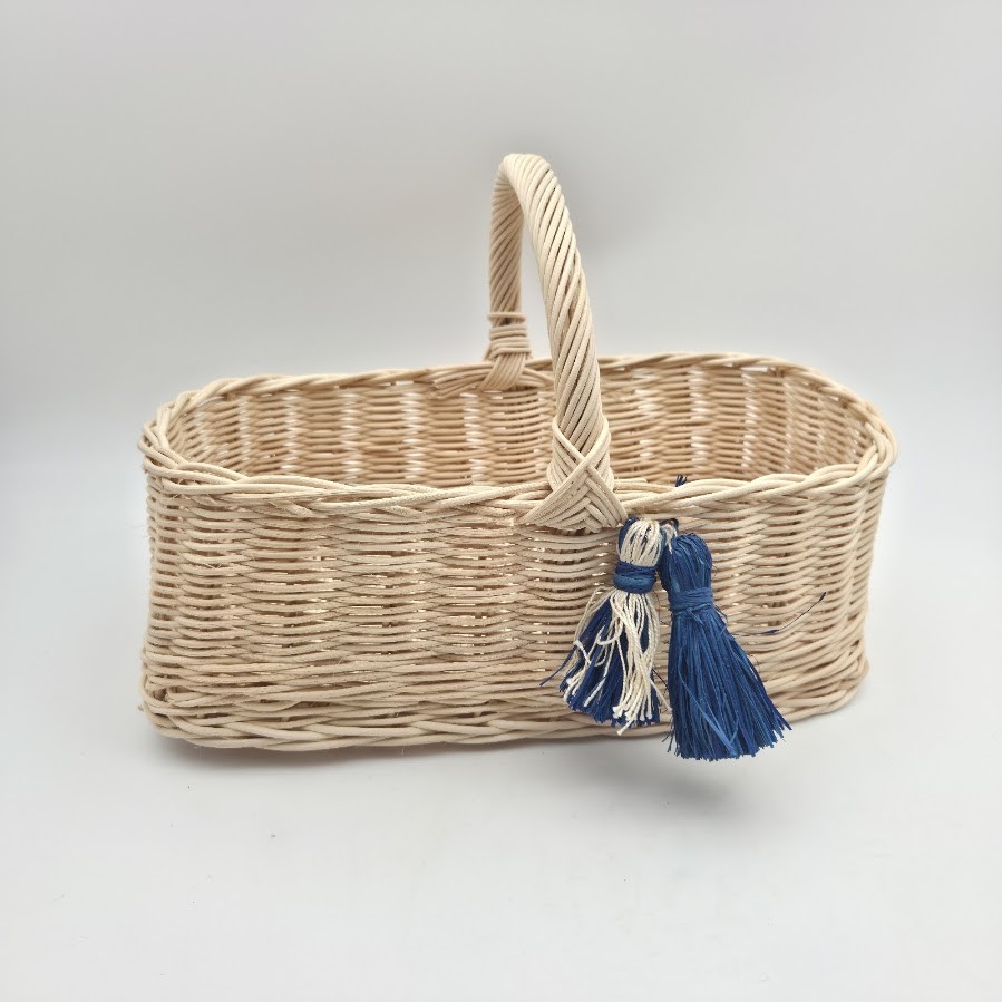 Panier rectangle en rotin écru - anse rotin - entièrement tressé à la main.