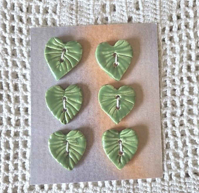 Ces boutons décoratifs à coudre en forme de feuilles vertes sont en céramique faience. Ils sont fabriqués et émaillés entièrement par mes soins. Ils sont vendus par lot