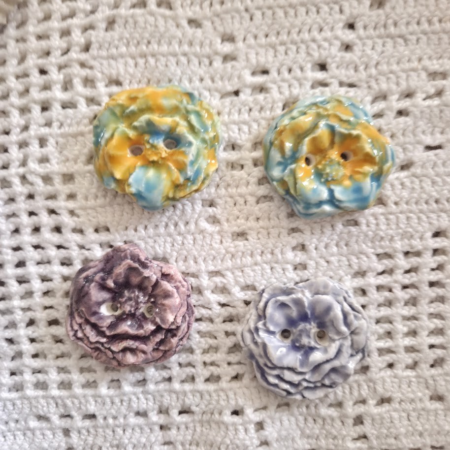 Ces boutons à coudre fleurs sont en céramique faïence et a été entièrement fabriqué par mes soins
