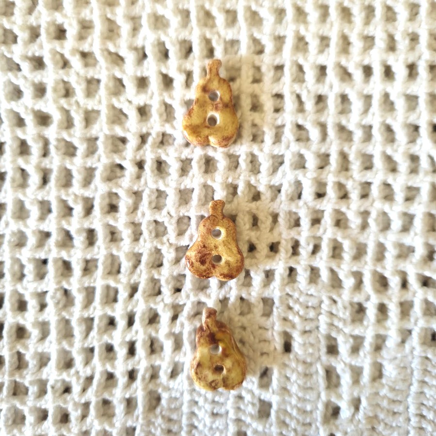 Ces 10 boutons décoratifs à coudre en forme de poires beige marron sont en céramique faience. Ils sont fabriqués et émaillés entièrement par mes soins. Ils sont vendus par lot