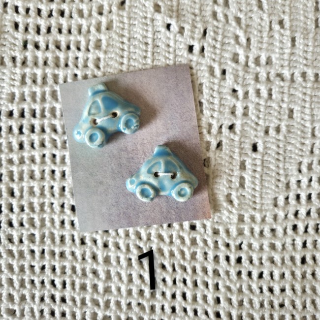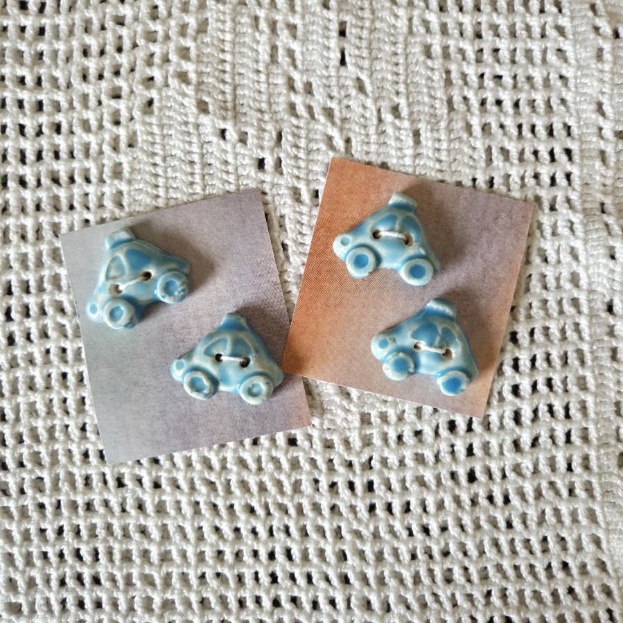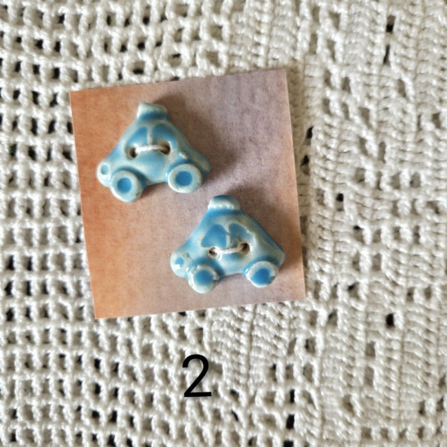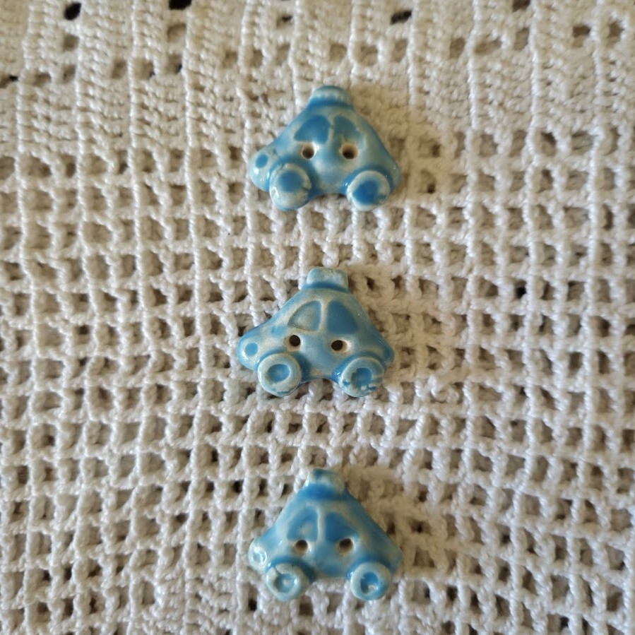 Ces boutons décoratifs à coudre en forme de voitures bleues sont en céramique faience. Ils sont fabriqués et émaillés entièrement par mes soins. Ils sont vendus par lots