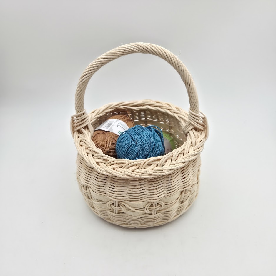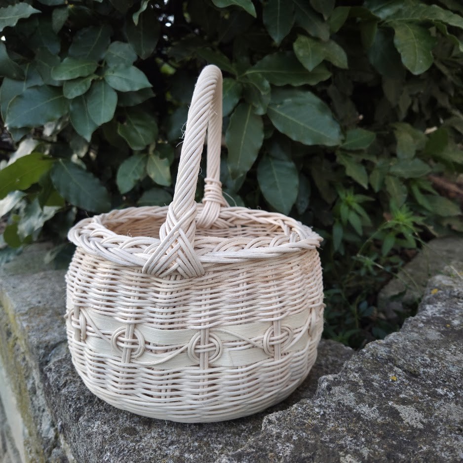Petit panier rond - idéal pour enfant - en rotin naturel - anse rotin - entièrement tressé à la main.
