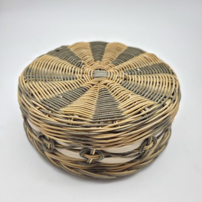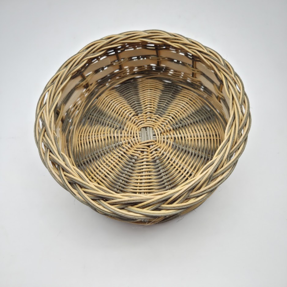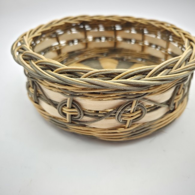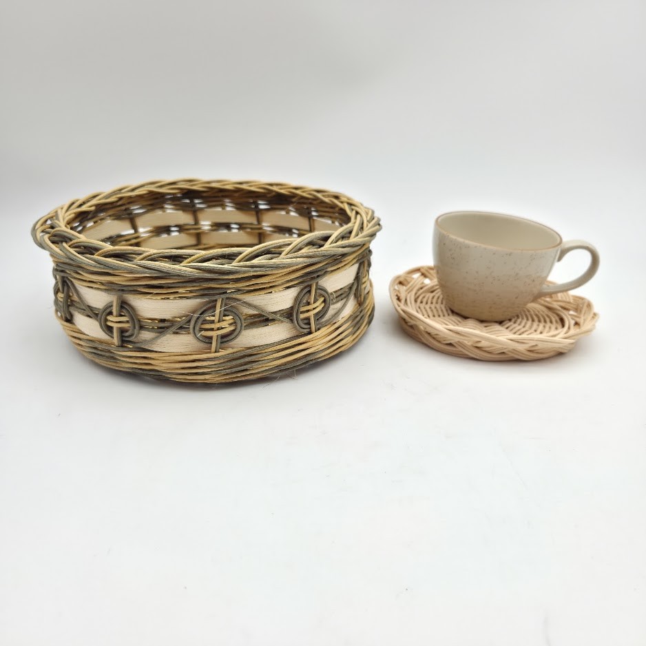 Petite corbeille ronde - coupe à fruits - panière à pain - panière à fruits - en rotin naturel écru et vert - entièrement tressé main
