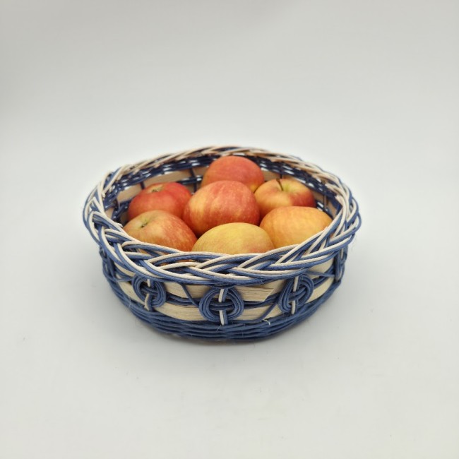 Petite corbeille ronde - panière à pain - corbeille à fruits en rotin naturel écru et bleue - fait main