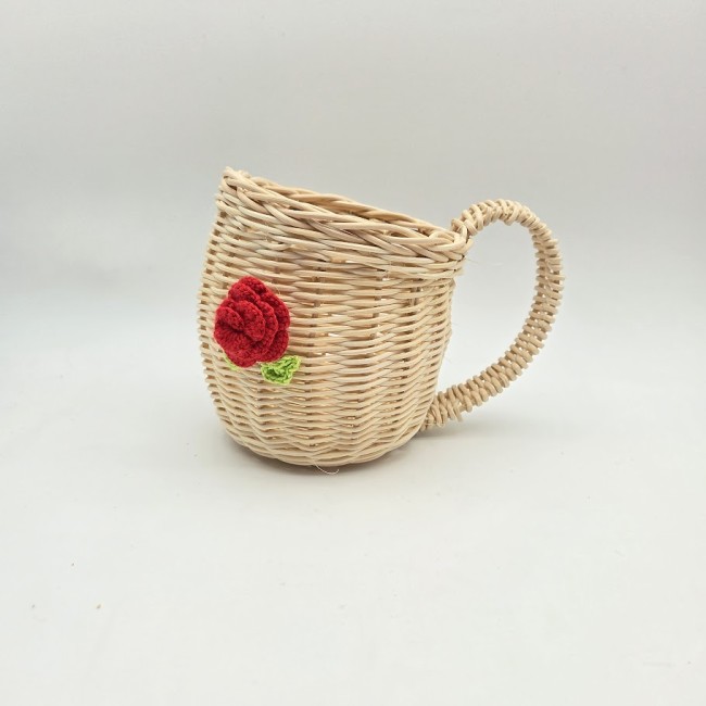 Pot - pot à crayons - vide poche en rotin naturel rouge et jaune - fait main