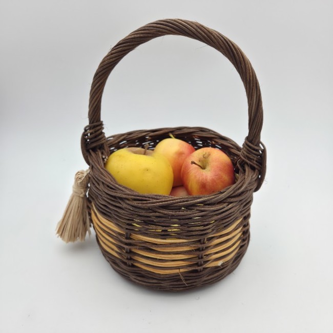 Petit panier rond (pour enfant ou pas) en rotin naturel marron et ocre - anse rotin marron - tressé main