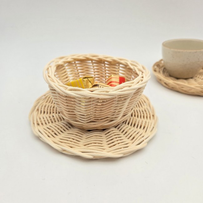 Vide-poche - coupelle - Petite corbeille ronde avec soucoupe en rotin écru - fait main