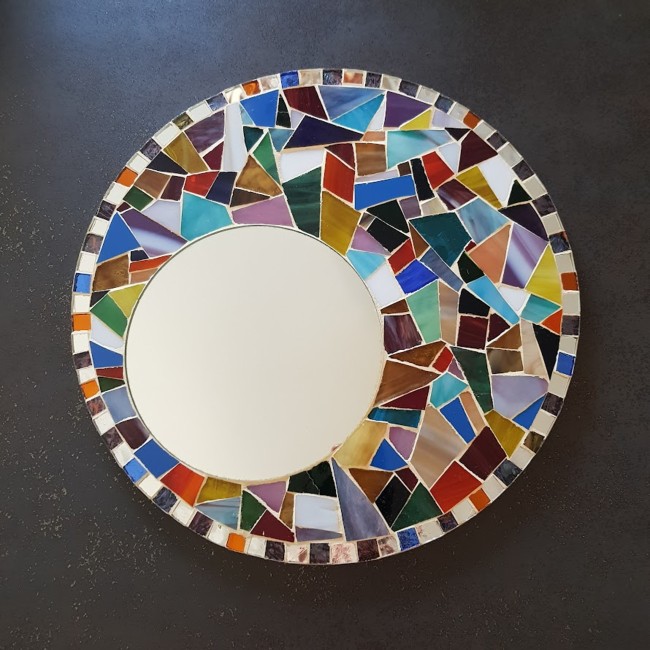 Tableau Miroir mosaique multicolore verre et miroir coloré