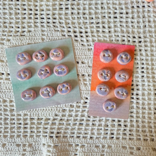 Lots de petits boutons ronds décoratifs mauves violets en céramique faience - fait main - vendus par lots