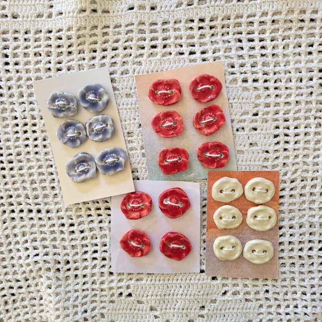 Lot de boutons à coudre fleurs coquelicots en céramique faïence - fait main