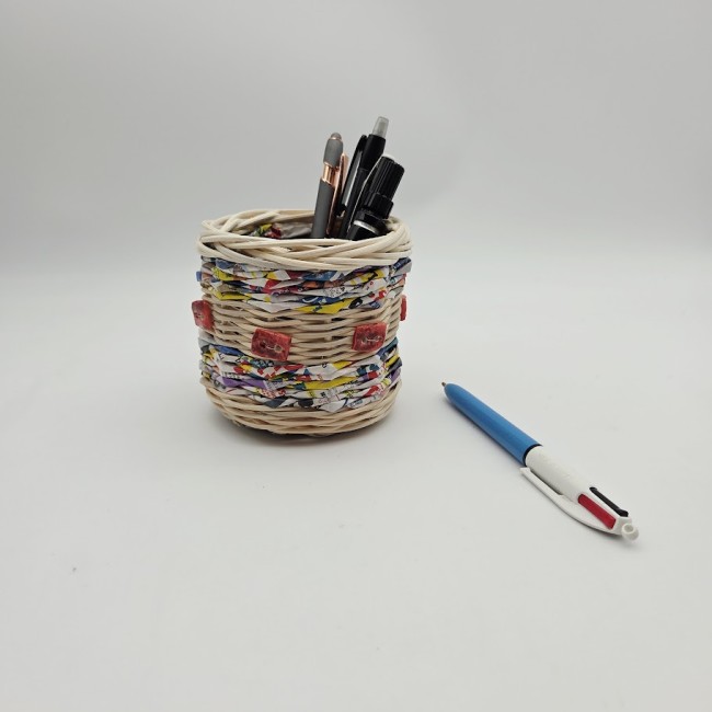 Pot à crayons - télécommandes - douillette à lunettes - en rotin et papier recyclé - tressé main