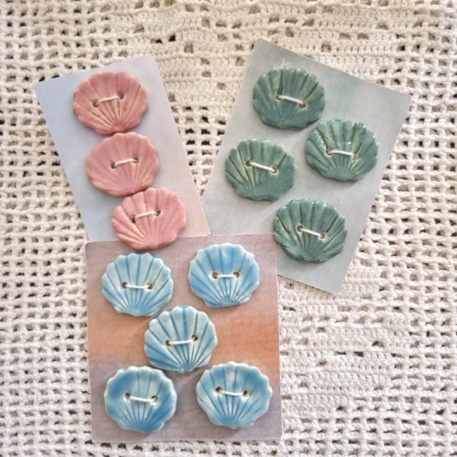 Boutons à coudre gros coquillages bleus ou verts en céramique artisanale pour vêtements, bijoux... - vendus par lots