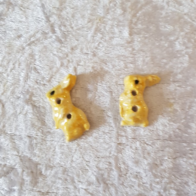 Lots de 2 boutons décoratifs à coudre lapins jaunes céramique faïence