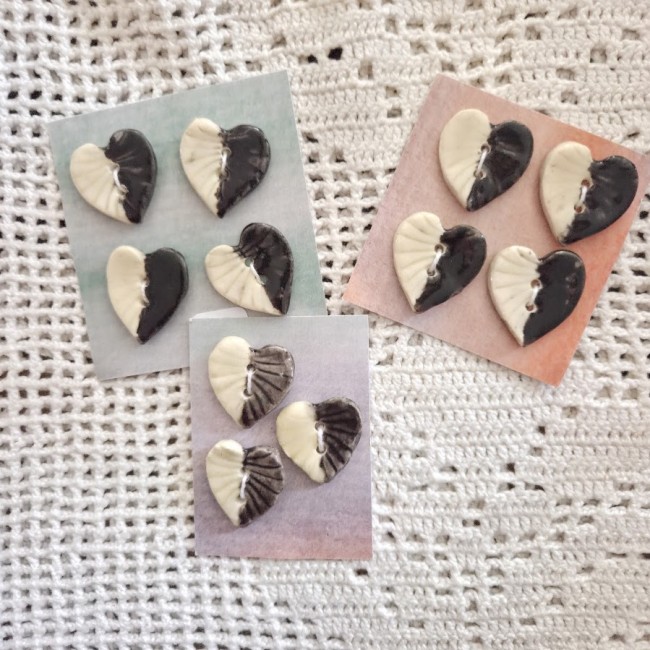 Au choix - Lot de boutons petits coeurs en céramique faïence - fait main