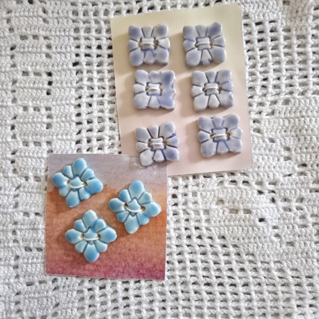 Lots de boutons à coudre fleurs carrées bleues en céramique faïence - fait main