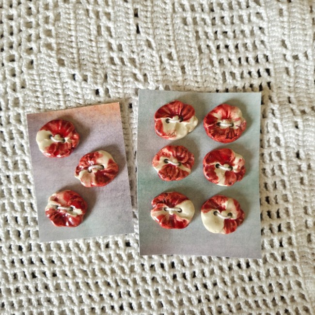 Lot de boutons à coudre fleurs coquelicots en céramique faïence - fait main